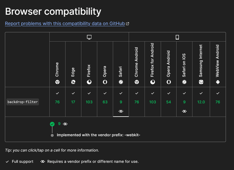 정답: -webkit-backdrop-filter를 추가로 사용하기.